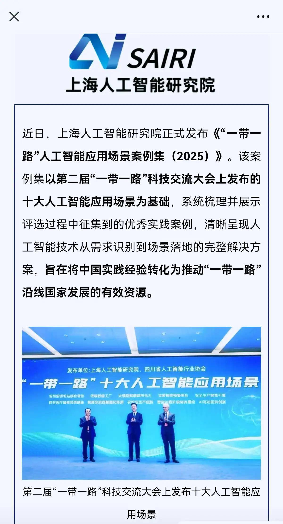 《“一带一”人工智能使用场景案例集(2025)》由上海人工智能研究院编撰,沉点遴选具备显著代表性、手艺先辈性和区域适配性的优良实践。